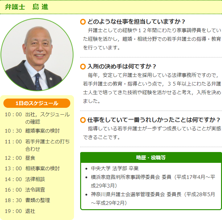 また、他の弁護士に気軽に相談できる風潮があるので、事件処理で迷うことがあっても、一人で抱えこむことがないのも良い点だと思います。