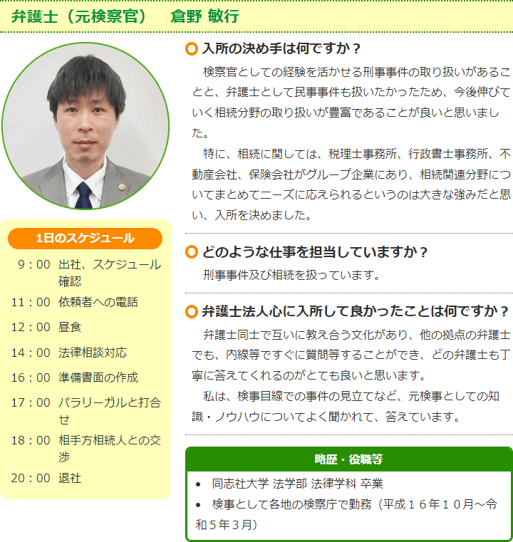 これまで弁護士として3年ほど勤務していましたが、自分の専門分野を持ちたいと思い、強みのある事務所を探しました。